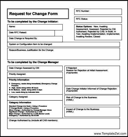 You will get compiler errors. Cookie documents are used pertaining to a great deal of points along with storing system or authentication data. Like a last notice on rending HTML Templates, it is usually better to keep the HTML document by itself fairly easy, and maintain the majority of the thinking on the server-side. The 2 Templates are meant for anytime there is definitely certainly valid data and when presently there is valid data. The Template is greatly demanded when someone might like to get the change. This Change Request Template Itil are available in the form of term along with performs remarkably well and along with in PDF FILE file format.